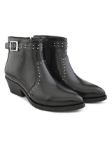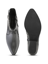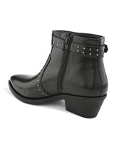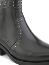 Freida Black Women's Boots with Silever Rivets and Cuban Heels. Handcrafted with Faux Leather Upper, Lining, Inner Soles & TPR OutSole. Only Grade-A Quality materials are used. San Frissco shoes are all handcrafted to perfection by expert artisans to offer a truly luxe and affordable experience. Hence, each shoe will have a unique hue and polish, and the color may differ slightly from the picture. |