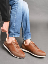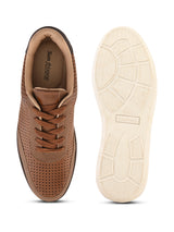 Getaway Tan Comfort sneakers with perforated side panels are designed for extreme comfort and versatility. Handcrafted with high quality finest material and expert craftsmanship. The style features faux leather upper, lining, inner soles along with a padded memory foam cushioning and light weight TPR outsole. Practical and comfortable our Sneakers are ideal everyday wear. San Frissco shoes are all handcrafted to perfection by expert artisans to offer a truly luxe and affordable experience. Hence, each shoe will have a unique hue and polish, and the color may differ slightly from the picture. |