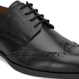 Birkin Black Formal Shoes with Brogue Detailing. Handcrafted with Italian Leather Upper Genuine Leather Lining , Inner Soles & TPR Sole. Only Grade-A Leather used. San Frissco Luxor shoes are hand-finished and couture-level creations. Hence, each shoe will have a unique hue and polish, and the color may differ slightly from the picture.