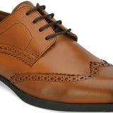 Birkin Tan Formal Shoes with Brogue Detailing. Handcrafted with Italian Leather Upper Genuine Leather Lining , Inner Soles & TPR Sole. Only Grade-A Leather used. San Frissco Luxor shoes are hand-finished and couture-level creations. Hence, each shoe will have a unique hue and polish, and the color may differ slightly from the picture.