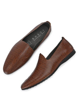 Crest Textured Jutti's in Brown are Handcrafted with Italian Leather Upper Genuine Leather Lining , Inner Soles & TPR Sole. Only Grade-A Leather used. Shipped with luxury shoe bag, shoe horn and a shoe shinner. San Frissco Luxor shoes are hand-finished and couture-level creations. Hence, each shoe will have a unique hue and polish, and the color may differ slightly from the picture.