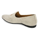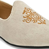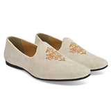 Grace Textured Embroidered Jutti's in Beige. Handcrafted with Italian Leather Upper Genuine Leather Lining , Inner Soles & TPR Sole. Only Grade-A Leather used. Shipped with luxury shoe bag, shoe horn and a shoe shinner. San Frissco Luxor shoes are hand-finished and couture-level creations. Hence, each shoe will have a unique hue and polish, and the color may differ slightly from the picture.