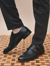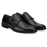 Hugo Classic Double Monk Shoes in Black. Handcrafted with Italian Leather Upper Genuine Leather Lining , Inner Soles & TPR Sole. Only Grade-A Leather used. San Frissco Luxor shoes are hand-finished and couture-level creations. Hence, each shoe will have a unique hue and polish, and the color may differ slightly from the picture.