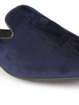 Luxe Midnight Blue Mules Handcrafted with Velveteen Upper Genuine Leather Lining & Inner Soles & TPR Sole Only Grade-A Leather used Shipped with luxury shoe bag. San Frissco Luxor shoes are hand-finished and couture-level creations. Hence, each shoe will have a unique hue and polish, and the color may differ slightly from the picture