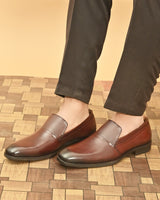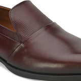 Newman Cherry Textured Formal Slip-Ons. Handcrafted with Italian Leather Upper Genuine Leather Lining , Inner Soles & TPR Sole. Only Grade-A Leather used. San Frissco Luxor shoes are hand-finished and couture-level creations. Hence, each shoe will have a unique hue and polish, and the color may differ slightly from the picture.