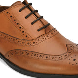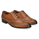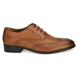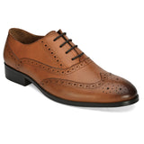 Turner Tan Formal Shoes with Brogue Detailing. Handcrafted with Italian Leather Upper Genuine Leather Lining , Inner Soles & TPR Sole. Only Grade-A Leather used. San Frissco Luxor shoes are hand-finished and couture-level creations. Hence, each shoe will have a unique hue and polish, and the color may differ slightly from the picture.