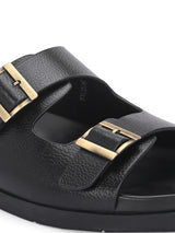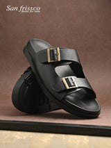 Brick Black Recovery Sandals with Ultra Cushioned Footbeds and Gold Buckle Accent. Handcrafted with Faux Leather Upper, Lining, Inner Soles & PU OutSole. Only Grade-A Quality materials are used. San Frissco shoes are all handcrafted to perfection by expert artisans to offer a truly luxe and affordable experience. Hence, each shoe will have a unique hue and polish, and the color may differ slightly from the picture. |