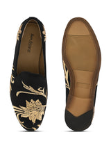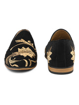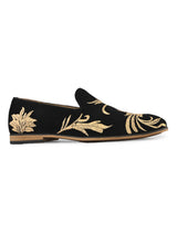 San Frissco Men’s Black Velvet Embroidered Loafers