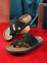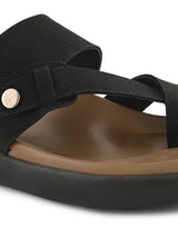 | Step into effortless style and all-day comfort with these San Frissco men’s sandals. Designed with a sleek black finish, these sandals feature a modern cross-strap upper and a secure toe loop for a snug fit. The cushioned footbed provides superior comfort, making them perfect for daily wear, casual outings, or weekend getaways. The durable sole ensures long-lasting use while offering excellent grip and support. Pair them with jeans, shorts, or traditional wear for a versatile look. |