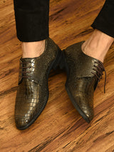Venus Textured Derby Shoes with Gold Dust Finishing and contrasting laces. Handcrafted with High Quality Faux Leather Upper & Lining, TPR Sole. Only Grade-A quality materials used. San Frissco shoes are all handcrafted to perfection by expert artisans to offer a truly luxe and affordable experience. Hence, each shoe will have a unique hue and polish, and the color may differ slightly from the picture.