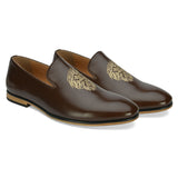 Carlos Embroidered Loafers in Brown. Handcrafted with High Quality Faux Leather, Lining & TPR Sole. Only Grade-A quality materials used. San Frissco shoes are all handcrafted to perfection by expert artisans to offer a truly luxe and affordable experience. Hence, each shoe will have a unique hue and polish, and the color may differ slightly from the picture.