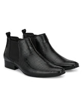 Dune Black Chelsea Ankle Boots with Textured Upper. Handcrafted with High Quality Faux Leather Upper & Lining, TPR Sole. Only Grade-A quality materials used. San Frissco shoes are all handcrafted to perfection by expert artisans to offer a truly luxe and affordable experience. Hence, each shoe will have a unique hue and polish, and the color may differ slightly from the picture.