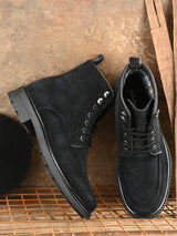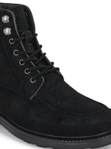 Fabian Lace-Up Ankle Boots in Black Suede. Handcrafted with High Quality Faux Leather Upper & Lining, TPR Sole. Only Grade-A quality materials used. San Frissco shoes are all handcrafted to perfection by expert artisans to offer a truly luxe and affordable experience. Hence, each shoe will have a unique hue and polish, and the color may differ slightly from the picture.