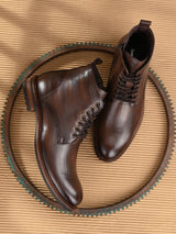 Howard Lace-Up High Top Ankle Boots In Brown. Handcrafted with High Quality Faux Leather Upper & Lining, TPR Sole. Only Grade-A quality materials used. San Frissco shoes are all handcrafted to perfection by expert artisans to offer a truly luxe and affordable experience. Hence, each shoe will have a unique hue and polish, and the color may differ slightly from the picture.