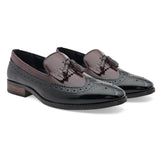 Sapphire Black-Burgundy Tassel Loafers. Handcrafted with High Quality Faux Leather, PU Lining & TPR Sole Only Grade-A quality materials used San Frissco shoes are all handcrafted to perfection by expert artisans to offer a truly luxe and affordable experience. Hence, each shoe will have a unique hue and polish, and the color may differ slightly from the picture.