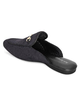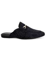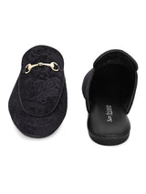 Miller Black Paisley Textured Mules with Buckle. Handcrafted with High Quality Velveteen, PU Lining & TPR Sole. Only Grade-A quality materials used. San Frissco shoes are all handcrafted to perfection by expert artisans to offer a truly luxe and affordable exerience. Hence, each shoe will have a unique hue and polish, and the color may differ slightly from the picture.