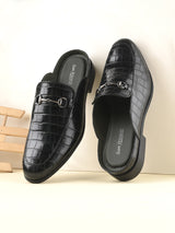 Amalfi Black Horsebit Buckle Mules with Textured Upper. Handcrafted with High Quality Faux Leather, Lining & TPR Sole. Only Grade-A quality materials used. San Frissco shoes are all handcrafted to perfection by expert artisans to offer a truly luxe and affordable experience. Hence, each shoe will have a unique hue and polish, and the color may differ slightly from the picture. |