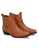Andi Tan Western Boots. Handcrafted with High-Quality Faux Leather Upper,Lining & TPR Sole. Only Grade-A quality materials used. San Frissco shoes are all handcrafted to perfection by expert artisans to offer a truly luxe and affordable experience. Hence, each shoe will have a unique hue and polish, and the color may differ slightly from the picture.