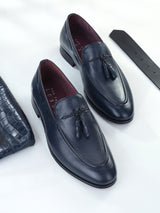 Baizen Blue Tassel Loafers. Handcrafted with Italian Leather Upper, Genuine Leather Lining & Inner Soles & TPR Sole. Only Grade-A Leather used. San Frissco Luxor shoes are hand-finished and couture-level creations. Hence, each shoe will have a unique hue and polish, and the color may differ slightly from the picture.