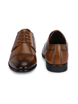 Bergamo Tan Formal Shoes with Brogue Detailing. Handcrafted with High Quality Faux Leather, PU Lining & TPR Sole. Only Grade-A quality materials used. San Frissco shoes are all handcrafted to perfection by expert artisans to offer a truly luxe and affordable experience. Hence, each shoe will have a unique hue and polish, and the color may differ slightly from the picture.