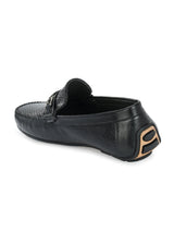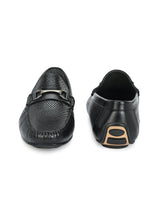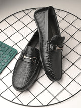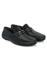 Berman Black Textured Driving Loafers with Buckle Detailing. Handcrafted with Italian Leather Upper and Lining , PU Inner Soles & TPR Sole. Only Grade-A Leather used. San Frissco Luxor shoes are hand-finished and couture-level creations. Hence, each shoe will have a unique hue and polish, and the color may differ slightly from the picture. |