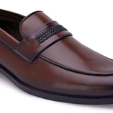 Bond Cherry Loafers with Textured Saddle Strap, for a Semi-Formal Look. Handcrafted with High Quality Faux Leather Upper, Lining & TPR Sole Only Grade-A qualty materials used. San Frissco shoes are all handcrafted to perfection by expert artisans to offer a truly luxe and affordable experience. Hence, each shoe will have a unique hue and polish, and the color may differ slightly from the picture.
