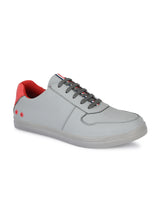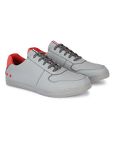 Cairo Grey & Red Casual Comfort Sneakers. Handcrafted with High Quality Faux Leather, Lining & TPR Sole. Only Grade-A quality materials used. San Frissco shoes are all handcrafted to perfection by expert artisans to offer a truly luxe and affordable experience. Hence, each shoe will have a unique hue and polish, and the color may differ slightly from the picture.