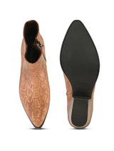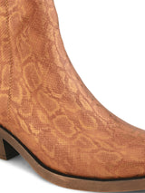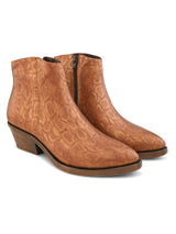 Cherise Rust Women's Boots with Snake Textured Upper and Cuban Heels. Handcrafted with Faux Leather Upper, Lining, Inner Soles & TPR OutSole. Only Grade-A Quality materials are used. San Frissco shoes are all handcrafted to perfection by expert artisans to offer a truly luxe and affordable experience. Hence, each shoe will have a unique hue and polish, and the color may differ slightly from the picture. |