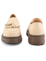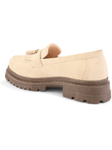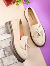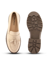 | Chloe Beige Women Height increasing Chunky Loafers with Tassel Detailing & Cushioned footbed. Handcrafted with High Quality Faux Leather Upper, Lining, Inner Soles and Textured and patterned EVA outsole. Only Grade-A Quality materials are used. San Frissco shoes are all handcrafted to perfection by expert artisans to offer a truly luxe and affordable experience. Hence, each shoe will have a unique hue and polish, and the color may differ slightly from the picture. |