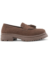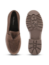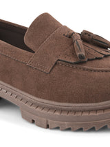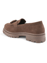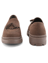 | Chloe Brown Women Height increasing Chunky Loafers with Tassel Detailing & Cushioned footbed. Handcrafted with High Quality Faux Leather Upper, Lining, Inner Soles and Textured and patterned EVA outsole. Only Grade-A Quality materials are used. San Frissco shoes are all handcrafted to perfection by expert artisans to offer a truly luxe and affordable experience. Hence, each shoe will have a unique hue and polish, and the color may differ slightly from the picture. |