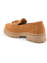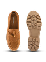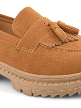 | Chloe Tan Women Height increasing Chunky Loafers with Tassel Detailing & Cushioned footbed. Handcrafted with High Quality Faux Leather Upper, Lining, Inner Soles and Textured and patterned EVA outsole. Only Grade-A Quality materials are used. San Frissco shoes are all handcrafted to perfection by expert artisans to offer a truly luxe and affordable experience. Hence, each shoe will have a unique hue and polish, and the color may differ slightly from the picture. |