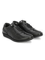 Clamor Black Sneakers with Black Lining. Handcrafted with High Quality Faux Leather, Lining & TPR Sole. Only Grade-A quality materials used. San Frissco shoes are all handcrafted to perfection by expert artisans to offer a truly luxe and affordable experience. Hence, each shoe will have a unique hue and polish, and the color may differ slightly from the picture. |