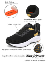 | Cloud Black Casual Sneakers. Only Grade-A quality materials used. Handcrafted with High Quality FlyKnit Upper and Ultra Lights Eva Sole. San Frissco shoes are all handcrafted to perfection by expert artisans to offer a truly luxe and affordable experience. Hence, each shoe will have a unique hue and polish, and the color may differ slightly from the picture. |