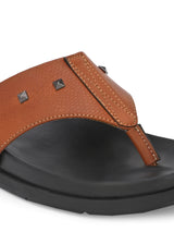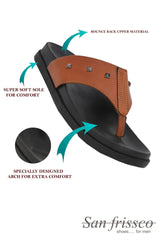 | Cornell Tan Thong Slippers with Stud Detailing and Arch Support. Handcrafted with High Quality Faux Leather Upper & Lining, PU Sole. Only Grade-A quality materials used. San Frissco shoes are all handcrafted to perfection by expert artisans to offer a truly luxe and affordable experience. Hence, each shoe will have a unique hue and polish, and the color may differ slightly from the picture. |