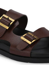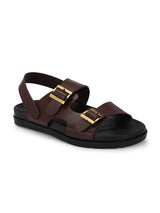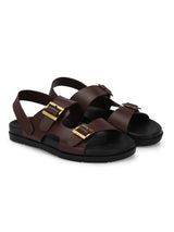 Cuba Brown Sandals with Gold Buckle Accent. Handcrafted with Faux Leather Upper, Lining, Inner Soles & TPR OutSole. Only Grade-A Quality materials are used. San Frissco shoes are all handcrafted to perfection by expert artisans to offer a truly luxe and affordable experience. Hence, each shoe will have a unique hue and polish, and the color may differ slightly from the picture. |