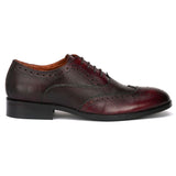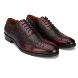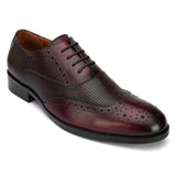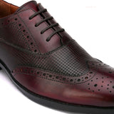 Delmar Cherry Textured Formal Brogues. Handcrafted with Italian Leather Upper Genuine Leather Lining , Inner Soles & TPR Sole. Only Grade-A Leather used. San Frissco Luxor shoes are hand-finished and couture-level creations. Hence, each shoe will have a unique hue and polish, and the color may differ slightly from the picture.