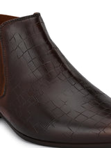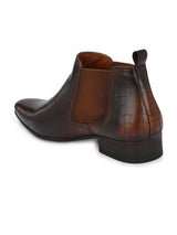 Dune Tan Chelsea Ankle Boots with Textured Upper. Handcrafted with High Quality Faux Leather Upper & Lining, TPR Sole. Only Grade-A quality materials used. San Frissco shoes are all handcrafted to perfection by expert artisans to offer a truly luxe and affordable experience. Hence, each shoe will have a unique hue and polish, and the color may differ slightly from the picture.
