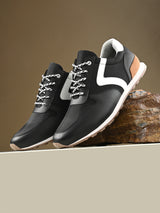 | Ecru Black Casual Sneakers with Contrasting laces. Handcrafted with High Quality Faux Leather, Lining & TPR Sole. Only Grade-A quality materials used. San Frissco shoes are all handcrafted to perfection by expert artisans to offer a truly luxe and affordable experience. Hence, each shoe will have a unique hue and polish, and the color may differ slightly from the Picture. |