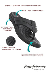 Elvis Black Thong Slippers with Logo Branding and Memory Foam Footbed For All Day Comfort. Handcrafted with High Quality Faux Leather Upper & Lining, PU Sole. Only Grade-A quality materials used. San Frissco shoes are all handcrafted to perfection by expert artisans to offer a truly luxe and affordable experience. Hence, each shoe will have a unique hue and polish, and the color may differ slightly from the picture. |