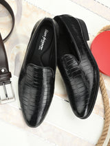 Escaro Black Textured Slip-Ons