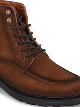 Fabian Lace-Up Ankle Boots in Tan Suede. Handcrafted with High Quality Faux Leather Upper & Lining, TPR Sole. Only Grade-A quality materials used. San Frissco shoes are all handcrafted to perfection by expert artisans to offer a truly luxe and affordable experience. Hence, each shoe will have a unique hue and polish, and the color may differ slightly from the picture.
