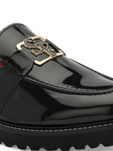 | Flambe Black Patent Chunky Loafers Buckle Detailing and Contrast Stitching. Handcrafted with High Quality Faux Leather, PU Lining & PU Sole. Only Grade-A quality materials used. San Frissco shoes are all handcrafted to perfection by expert artisans to offer a truly luxe and affordable experience. Hence, each shoe will have a unique hue and polish, and the color may differ slightly from the picture. |