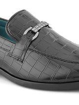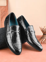 Gianni Black Croco Textured Slip-Ons with Buckle Detailing. Handcrafted with High Quality Faux Leather, PU Lining & TPR Sole. Only Grade-A quality materials used. San Frissco shoes are all handcrafted to perfection by expert artisans to offer a truly luxe and affordable experience. Hence, each shoe will have a unique hue and polish, and the color may differ slightly from the picture.