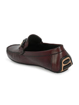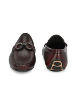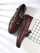 Globus Cherry Driving Loafers with Big Buckle Detailing and Scaled Textured Upper. Handcrafted with Italian Leather Upper and Lining , PU Inner Soles & TPR Sole. Only Grade-A Leather used. San Frissco Luxor shoes are hand-finished and couture-level creations. Hence, each shoe will have a unique hue and polish, and the color may differ slightly from the picture. |