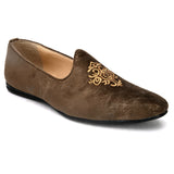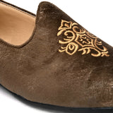 Grace Textured Embroidered Jutti's in Brown. Handcrafted with Italian Leather Upper, Genuine Leather Lining, Inner Soles & TPR outsole. Only Grade-A Quality Leather is used. San Frissco Luxor Shoes are hand-finished and couture-level creations. Hence, each shoe will have a unique hue and polish and the color may differ slightly from the picture.
