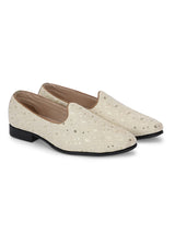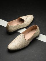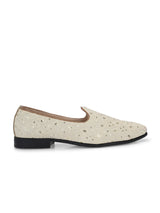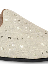 | Heir Beige Textured Slip-On Mojaris with Golden Sequence Accent. Handcrafted with High Quality Handmade Upper, PU Lining & TPR Sole. Only Grade-A quality materials used. San Frissco shoes are all handcrafted to perfection by expert artisans to offer a truly luxe and affordable experience. Hence, each shoe will have a unique hue and polish, and the color may differ slightly from the picture. |