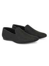 Hollis Black Slip-Ons with a Textured Upper. Handcrafted with High Quality Faux Leather Upper, PU Lining & TPR Sole. Only Grade-A quality materials are used. San Frissco shoes are all handcrafted to perfection by expert artisans to offer a truly luxe and affordable experience. Hence, each shoe will have a unique hue and polish, and the color may differ slightly from the picture.