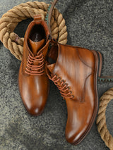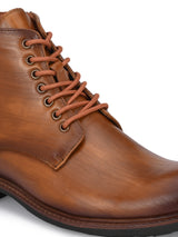 Howard Lace-Up High Top Ankle Boots In Tan. Handcrafted with High Quality Faux Leather Upper & Lining, TPR Sole. Only Grade-A quality materials used. San Frissco shoes are all handcrafted to perfection by expert artisans to offer a truly luxe and affordable experience. Hence, each shoe will have a unique hue and polish, and the color may differ slightly from the picture.