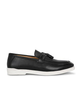 | James Black Casual Slip-ons with Contrasting white sole. Handcrafted with High Quality Faux Leather Upper, PU Lining & TPR Sole. Only Grade-A quality materials used. San Frissco shoes are all handcrafted to perfection by expert artisans to offer a truly luxe and affordable experience. Hence, each shoe will have a unique hue and polish, and the color may differ slightly from the picture. |