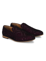 | Juniper Cherry Textured Slip-On Mojaris with Sequence Accent. Handcrafted with High Quality Handmade Upper, PU Lining & TPR Sole. Only Grade-A quality materials used. San Frissco shoes are all handcrafted to perfection by expert artisans to offer a truly luxe and affordable experience. Hence, each shoe will have a unique hue and polish, and the color may differ slightly from the picture. |